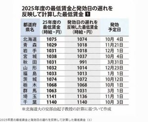 8月4日、中央最低賃金審議会は、63円・64円を2025最賃引上げ目安を示し、各県での最賃審議会で協議。全国では40道府県でこの目安を上回る各県最賃が決まりました(2024年は27県で上乗せ)