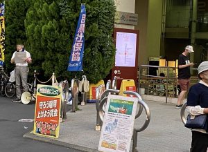 目黒社保協宣伝行動 最低賃金1226円&小中学校の学用品無償化を