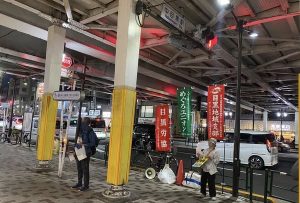 13名参加で17:30過ぎから開始しましたが、18:00過ぎ 突然の強雨で、終了しました。駅はあまやどりの人で埋まってきます。