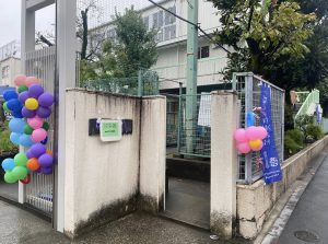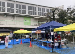 2025年10月26日 わくわく子どもまつり、今年は去年までの鷹番小学校が改築のため、上目黒小にて開催。午前8時半集合で準備開始。あいにくの天気で「雨モード」開催になりました。メインは2階の体育館ステージ。校庭では焼きそば・フランクフルト・綿あめなどの販売のみ。駐輪場やトイレ表示などとともにテント貼り、椅子・机の用意など。