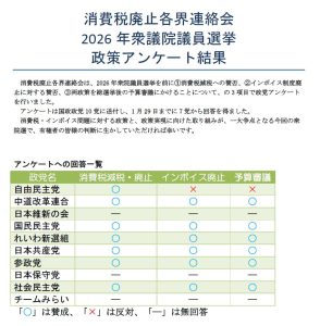 20260203「総選挙」にあたり総選挙にあたり各政党などへのアンケート