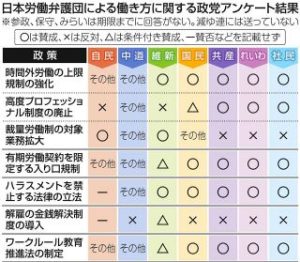 日本労働弁護団は28日、働き方に関する政策の主要政党へのアンケート結果発表
