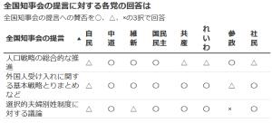 難民保護、外国人に関する政党アンケート結果