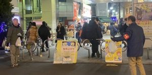 2026年2月9日 今年初の目黒労協春闘宣伝。9の日宣伝のばからそのまま目黒労協メンバーのみのこり、春闘だ!賃上げしよう、最低賃金あげようと、マイク宣伝、チラシくばり。前段の9条宣伝に比べて、受け取りの良さにびっくり。