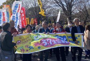 東京電力福島第1原発事故から15年になるのを前に、脱原発を訴えるイベント「とめよう原発3・7全国集会」が代々木公園であった。全国各地から参加した8500人(主催者発表)。